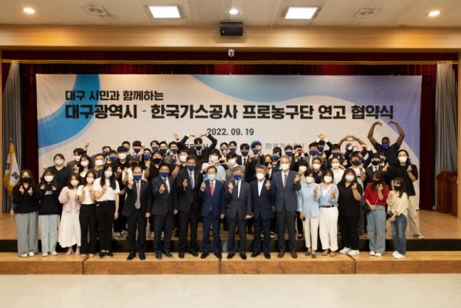 한국가스공사와 대구광역시는 19일 대구시청 산격청사에서 연고지 협약식을 체결했다.