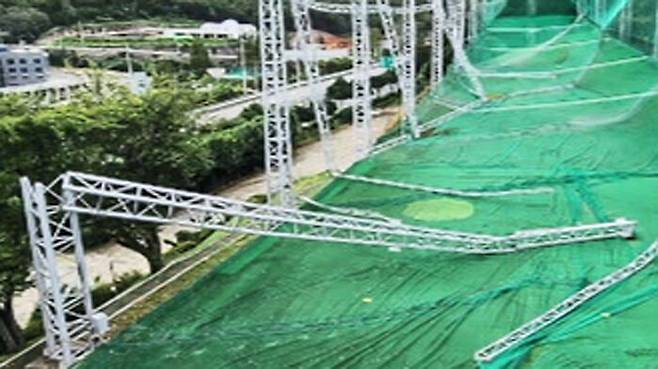 거제의 한 골프장에서는 10m가 넘는 철탑이 넘어지기도 했습니다.