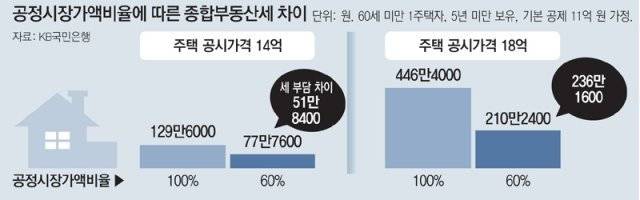 먼저 1가구 1주택자의 종부세 부담은 올해부터 줄어든다. 정부는 8월 2일 종부세법 시행령을 개정해 종부세의 공정시장가액비율(과세표준을 산정할 때 공시가격에 곱하는 비율)을 100%에서 60%로 낮췄다. 공정시장가액비율은 올해부터 100%가 적용될 예정이었지만 종부세법 시행령 개정으로 1주택자의 세 부담이 지난해보다 낮아지게 됐다.