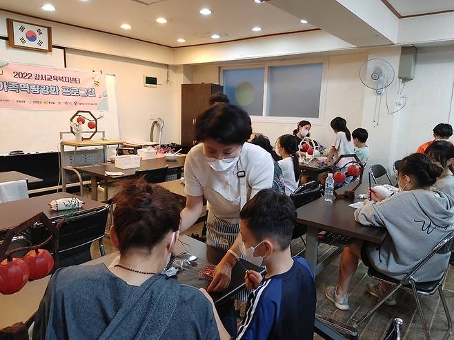 강서 교육복지센터 가족역량강화 프로그램은 코로나19로 인해 무너진 가족들의 일상 회복과 문화사각지대를 없애기 위해 지역과 여러 후원기관이 함께한 기획으로 한가위를 앞두고 가족의 소중함을 일깨우고 건강한 가족관계 향상에 큰 도움이 됐다는 평가입니다.