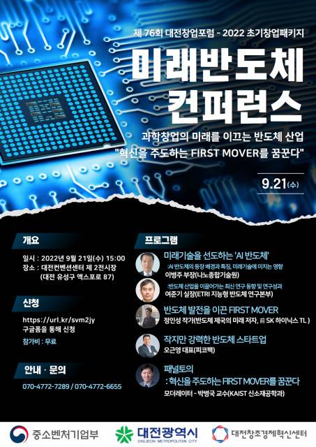 대전창조경제혁신센터, '제76회 대전창업포럼-2022 초기창업패키지 미래반도체 컨퍼런스' 참가자 모집