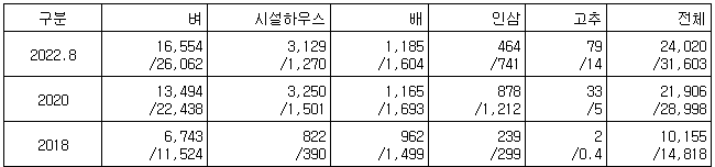 이는 4년 전인 2018년(1만155개 농가, 1만4천818㏊)과 비교해 농가 수는 2.4배로, 면적은 2.1배로 증가한 것이다.