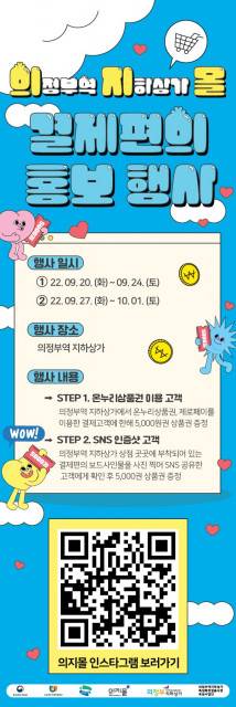 결제편의 홍보 행사는 의지몰의 온라인 활성화와 함께 의정부역 지하상가를 찾는 고객들의 만족도를 높이는 고객 참여형 이벤트다.