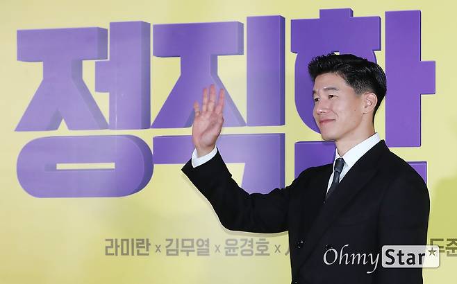김무열 배우가 20일 오후 서울 강남구의 한 상영관에서 열린 영화 <정직한 후보2> 시사회에서 포토타임을 갖고 있다.