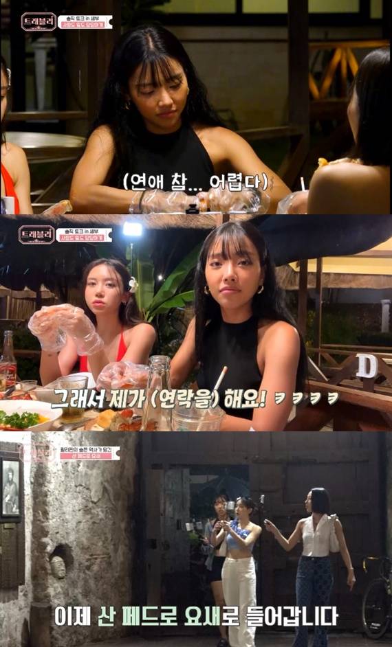 19일 '채널 IHQ'를 통해 방송된 '트래블리'에는 '싸이(PSY) 댄서'로 알려진 금조와 모아나 그리고 '씨엘(CL) 댄서'로 유명한 키메가 필리핀 세부에서 '연애 토크'를 하는 장면이 담겼다.