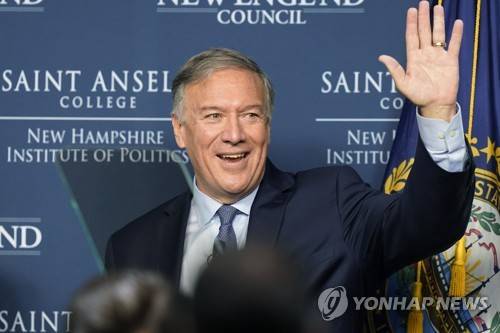 Former Secretary of State Mike Pompeo, a Republican presidential prospect, waves after addressing an audience Tuesday, Sept. 20, 2022, at a periodic "Politics and Eggs" gathering at Saint Anselm College, in Manchester, N.H. (AP Photo/Steven Senne)