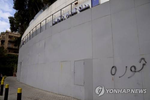 The facade of a closed BLOM Bank branch is covered with metal sheets to prevent acts of sabotage, in Beirut, Lebanon, Tuesday, Sept. 20, 2022. Lebanese banks closed their doors for three days on Sept. 19 to protest recent attacks and heists by depositors demanding their trapped savings. Arabic reads: "Revolution." (AP Photo/Hassan Ammar)
