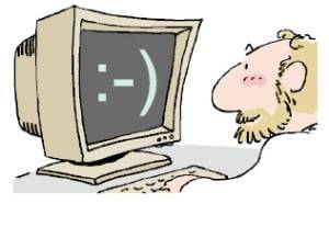 이모티콘은 감정을 뜻하는 이모션(emotion)과 조각을 뜻하는 아이콘(icon)의 합성어다. 첫 이모티콘은 1982년 미국 카네기멜런대학의 인터넷 게시판에 등장했다. 이 대학 컴퓨터학과의 스콧 팔먼 교수가 “오해와 분쟁을 예방하기 위해 농담일 땐 웃는 표정의 ‘:-)’를 쓰자”고 제안하면서 널리 퍼졌다.