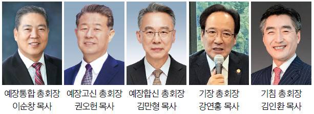 한 회기를 이끌어갈 새로운 지도자도 잇따라 선출됐다. 예장통합 총회는 이순창 연신교회 목사를 총회장에 추대했다. 예장고신은 부산 포도원교회에서 제72회 총회를 열고 신임 총회장에 권오헌 서울시민교회 목사를 선출했다. 예장합신은 경기도 남양주 중계충성교회에서 개회한 제107회 총회에서 김만형 친구들교회 목사를 총회장으로 뽑았다.