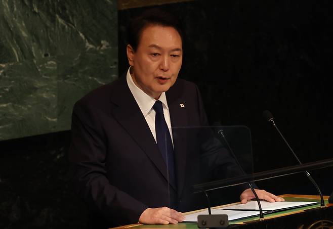 그러면서 유엔의 중요성을 짚었다. 윤 대통령은 "인류가 진정한 자유와 평화에 다가가기 위해서도 유엔의 역할이 매우 중요하다"며 "진정한 자유는 속박에서 벗어나는 것만이 아니라 자아를 인간답게 실현할 수 있는 기회를 갖는 것이고 진정한 평화는 단지 전쟁이 없는 상태가 아니라 인류 공동 번영의 발목을 잡는 갈등과 반목을 해소하고 인류가 더 번영할 수 있는 토대를 갖추는 것"이라고 말을 풀어갔다.