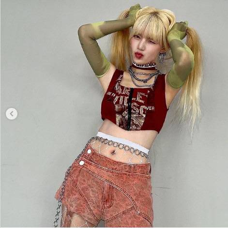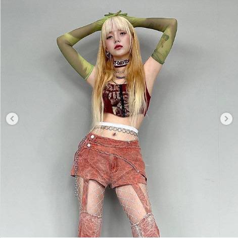 사진 속에는 최근 39kg까지 빠졌다는 지민의 모습. 지민은 망사스타킹과 민소매를 입고 그룹 활동 시절보다 더 마른 몸을 보여 걱정을 자아냈다.
