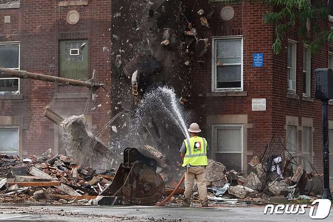 (시카고 AFP=뉴스1) 우동명 기자 = 20일 (현지시간) 일리노이주 시카고에서 폭발 사고가 발생해 불에 타고 파괴된 아파트가 보인다.