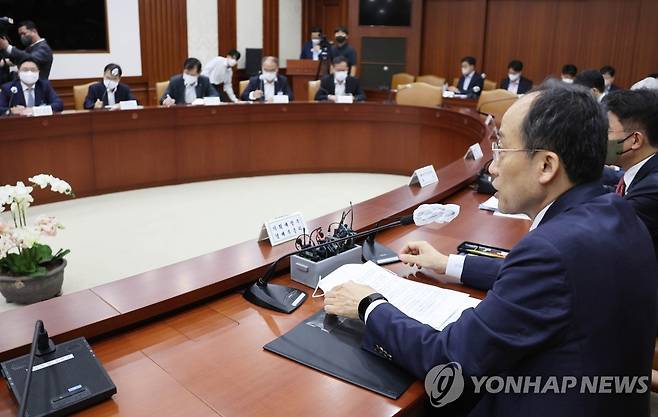 (서울=연합뉴스) 김승두 기자 = 21일 오전 정부서울청사에서 추경호 경제부총리 겸 기획재정부 장관 주재로 수출입동향 점검회의가 열리고 있다. 2022.9.21