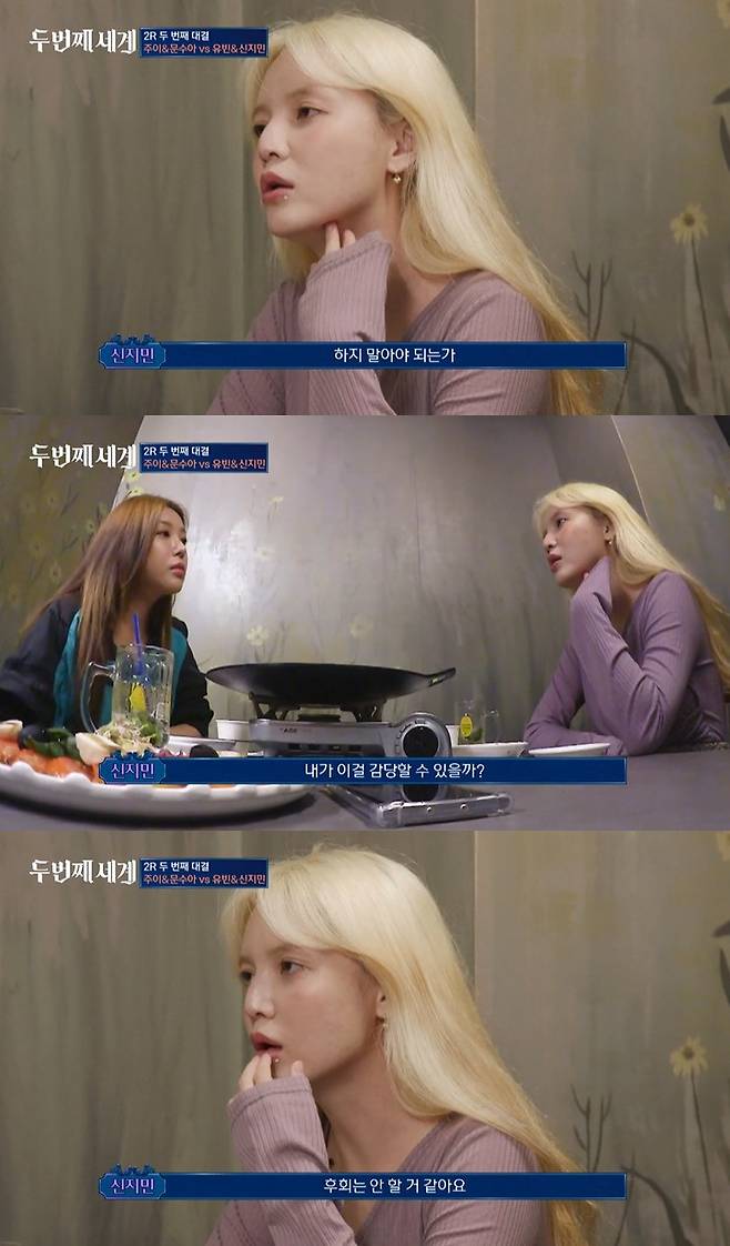 은퇴 선언 후 '두번째 세계' 출연 제안을 받고 고민이 많았던 신지민 씨는 "해야 하는 건가 안 해야 하는 건가, 내가 이걸 감당할 수 있을까 계속 생각했다. 좋은 말도 들을 수 있지만, 나쁜 말도 많이 들을 수 있으니까. 약간 상처받는 일이 생기는 게 두렵기도 했다"고 이야기했다.