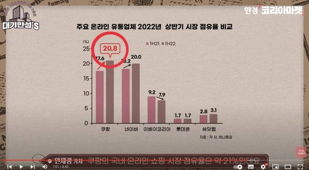 쿠팡의 국내 온라인 쇼핑 시장 점유율은 약 21% 인데요,