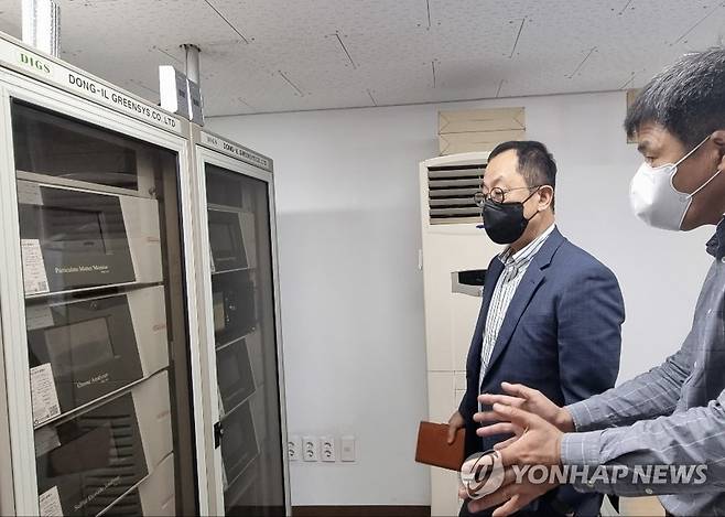 (서울=연합뉴스) 조성준 수도권대기환경청장 직무대리가 21일 서울 중구 서울시서소문청사에 위치한 대기환경측정소 내부를 점검하고 있다. 2022.9.21 [수도권대기환경청 제공. 재판매 및 DB 금지]