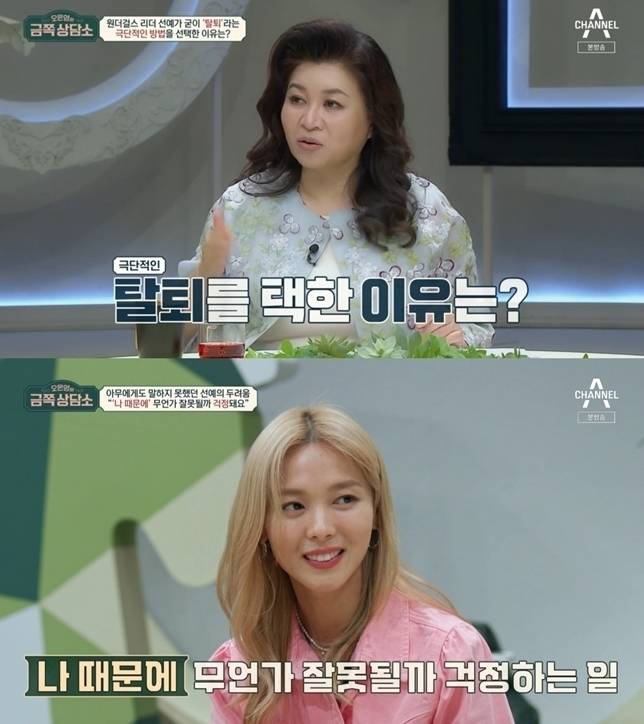 하지만 도 넘은 비난이 지속되자 칼을 빼들었다. 선예는 지난 9월 20일 채널A '금쪽상담소'에서 언급했던 원더걸스 탈퇴 관련 이야기에 대해 해명했다.