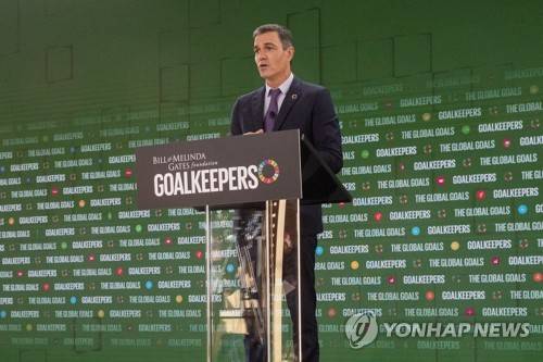 epa10196965 Spanish prime minister Pedro Sanchez, speaks at the Goalkeepers event hosted by the Bill and Melinda Gates Foundation in New York, New York, USA, 21 September 2022. EPA/SARAH YENESEL