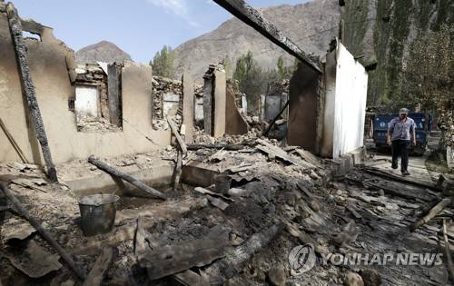 epa10197001 Burnt houses on the Kyrgyz-Tajik border in the village of Kapchygay, 1000 km from Bishkek, Kyrgyzstan, on 21 September 2022. The situation on the Kyrgyz-Tajik border is characterized as calm, with elements of tension, the Border Service of the State Committee for National Security of Kyrgyzstan said on 21 September. The conflict on the Kyrgyz-Tajik border with the use of weapons began on 14 September. It resulted in casualties and casualties on both sides. The parties accused each other of armed aggression. According to the Ministry of Health of Kyrgyzstan, as a result of armed clashes, 59 people were killed and 198 people were injured. The Ministry of Emergency Situations of the republic reported that in the Batken region, according to preliminary data, 294 houses and objects were destroyed or burned. More than 136 thousand citizens were evacuated from the conflict zone. EPA/IGOR KOVALENKO