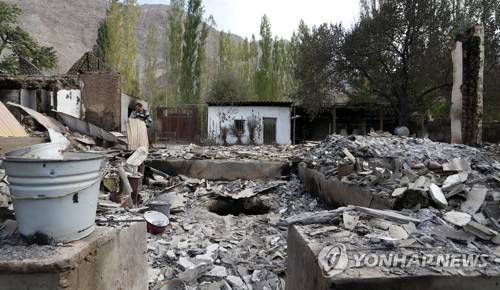 epa10196998 Burnt houses on the Kyrgyz-Tajik border in the village of Kapchygay, 1000 km from Bishkek, Kyrgyzstan, on 21 September 2022. The situation on the Kyrgyz-Tajik border is characterized as calm, with elements of tension, the Border Service of the State Committee for National Security of Kyrgyzstan said on 21 September. The conflict on the Kyrgyz-Tajik border with the use of weapons began on 14 September. It resulted in casualties and casualties on both sides. The parties accused each other of armed aggression. According to the Ministry of Health of Kyrgyzstan, as a result of armed clashes, 59 people were killed and 198 people were injured. The Ministry of Emergency Situations of the republic reported that in the Batken region, according to preliminary data, 294 houses and objects were destroyed or burned. More than 136 thousand citizens were evacuated from the conflict zone. EPA/IGOR KOVALENKO