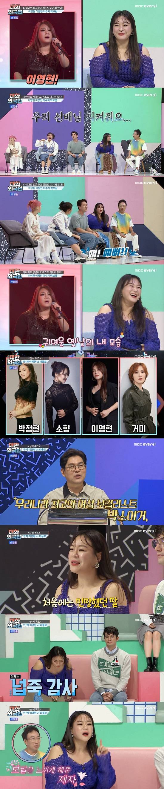 21일 방송된 MBC에브리원 '대한외국인'에서는 '다이어트, 어디까지 해봤니' 특집을 맞아 개그우먼 이수지, 빅마마 이영현, 2AM 이창민, 가수 박보람이 출연해 퀴즈 대결을 펼쳤다.