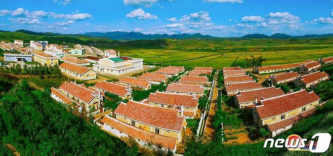 (평양 노동신문=뉴스1) = 북한 노동당 기관지 노동신문은 22일 2년 전 폭우와 태풍 피해로 파괴됐다가 복구된 황해북도 금천군 강북리 사진을 싣고 "(김정은) 총비서 동지의 다심하신 사랑이 깃들어 있다"라고 조명했다.