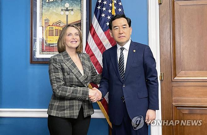 (서울=연합뉴스) 이창양 산업통상자원부 장관이 21일(현지시간) 워싱턴 D.C. 미국 의회에서 캐시 캐스터 하원의원과 면담을 하고 기념 촬영하고 있다. 2022.9.22 [산업통상자원부 제공. 재판매 및 DB 금지]