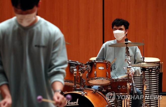 (인천=연합뉴스) 윤태현 기자 = 22일 오전 인천시 부평구 부평아트센터에서 시각장애인학교인 인천혜광학교 타악앙상블 단원들이 공연을 앞두고 리허설하고 있다. 2022.9.22