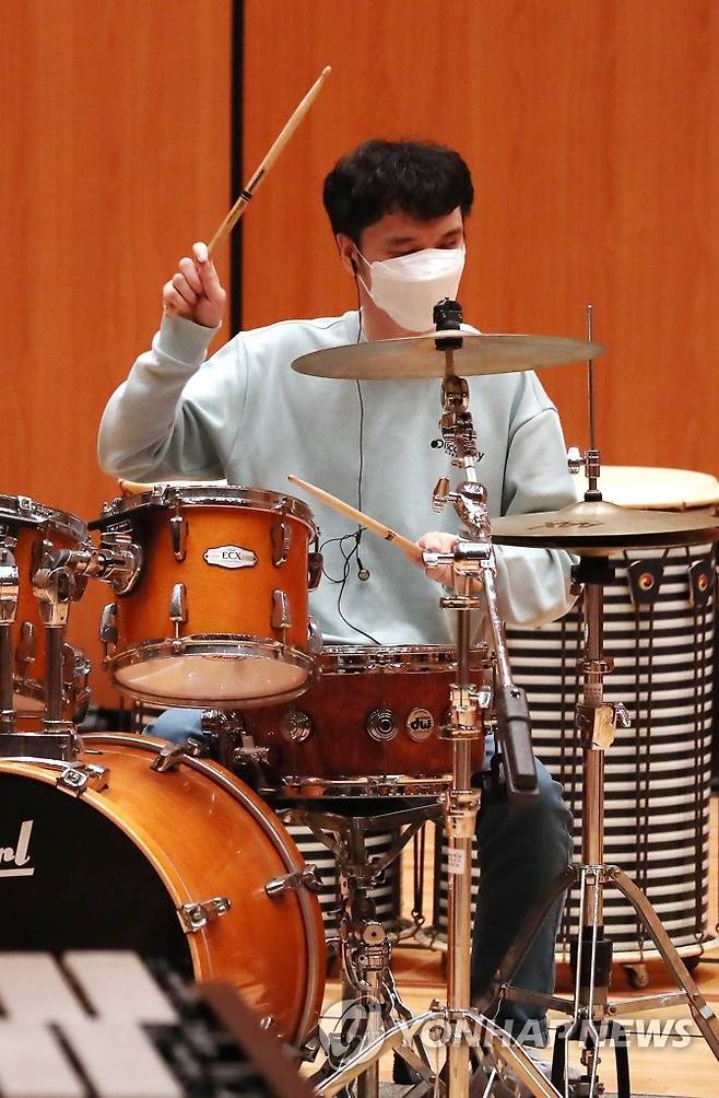 (인천=연합뉴스) 윤태현 기자 = 22일 오전 인천시 부평구 부평아트센터에서 시각장애인학교인 인천혜광학교 타악앙상블 한 단원이 공연을 앞두고 리허설하고 있다. 2022.9.22