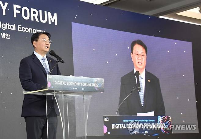 (서울=연합뉴스) 방기선 기획재정부 차관이 22일 서울 강남구 코엑스에서 열린 '2022년 디지털 이코노미 포럼'에 참석, 개회사를 하고 있다. 2022.9.22 [기획재정부 제공. 재판매 및 DB 금지]