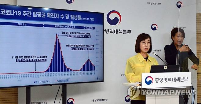 (청주=연합뉴스) 백경란 질병관리청장이 22일 충북 오송 질병관리청 브리핑실에서 정례브리핑을 하고 있다. 2022.9.22 [질병관리청 제공. 재판매 및 DB 금지]