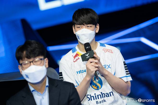 22일 오후 서울 종로구 그랑서울 롤파크 LCK 아레나에서 2022 리그 오브 레전드 월드 챔피언십(롤드컵) 출국 전 기자회견이 진행 중이다. 디알엑스 '주한' 이주한이 인터뷰를 하고 있다.