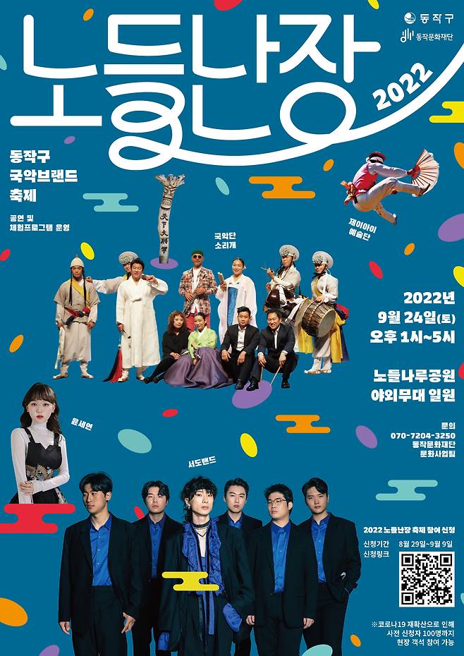 서울 동작구는 지역에서 활성화된 국악을 주제로 지역예술가와 주민 간 화합의 장을 마련하고자 오는 24일 국악장르 공연축제 '노들난장'을 노들나루공원 야외무대에서 개최한다고 22일 밝혔다.
