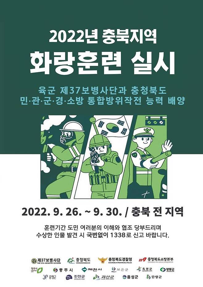육군 37사단은 오는 26일부터 30일 충북 전역에서 '2022년 화랑훈련'을 한다고 22일 밝혔다.