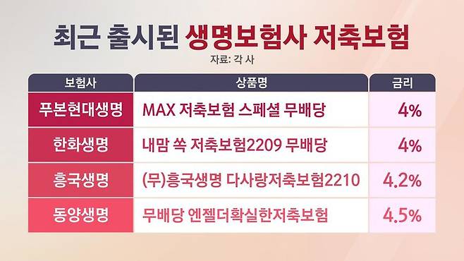푸본현대생명이 지난달 4% 저축보험 상품을 출시하면서 물꼬를 텄습니다. 이어 한화생명도 4% 상품을 출시했고, 흥국생명이 지난 16일 4.2% 상품을 내놓으면서 4%대 저축보험 상품 출시를 이어갔습니다.