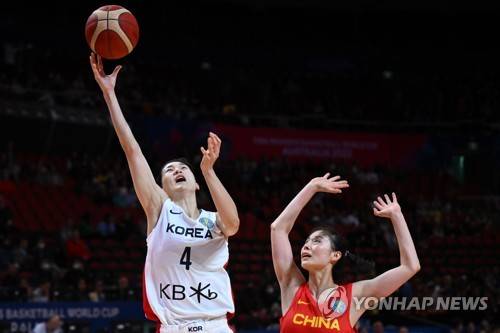 epa10198511 Yebin Yoon (L) of Korea takes a rebound during the 2022 FIBA Women's Basketball World Cup game between Korea and China at Qudos Bank Arena in Sydney, Australia, 22 September 2022. EPA/JAMES GOURLEY AUSTRALIA AND NEW ZEALAND OUT