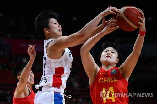 epa10198510 Yueru Li of China (R) takes a rebound during the 2022 FIBA Women's Basketball World Cup game between Korea and China at Qudos Bank Arena in Sydney, Australia, 22 September 2022. EPA/JAMES GOURLEY AUSTRALIA AND NEW ZEALAND OUT