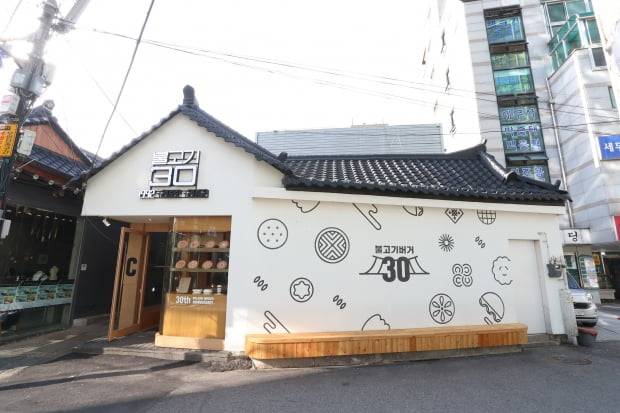 서울 익선동 한옥마을의 카페 골목. 과거와 현대가 공존하는 이 골목에 대규모 햄버거 팝업스토어가 들어섰다. 롯데리아가 세 개 건물을 한 달간 통째로 빌려 ‘불고기버거 팝업스토어’(사진)를 차린 것이다.