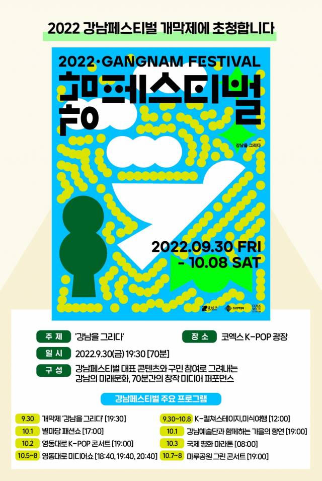 서울 강남구는 30일부터 다음달 8일까지 강남구 영동대로와 코엑스 일대에서 '2022 강남페스티벌'을 연다.