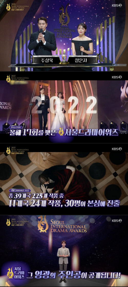 시상식은 메이트리의 ‘K-OST’ 메들리로 막을 열었다. 주상욱은 “최근 코로나로 인해 드라마 제작환경이 매우 어려워졌다”고 말했고, 정은지는 “그렇다. 한 명이 코로나에 걸리기만 해도 작품이 딜레이되고, 제작이 미뤄지기도 했다. 그럼에도 불구하고 많은 작품이 촬영돼 총 39개국 225개 작품 중 11개국 24개 작품, 30명이 서울드라마어워즈에 본심에 진출됐다”고 밝혔다.