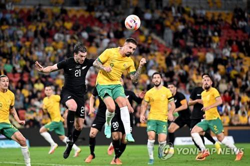 epa10199076 Jamie Maclaren (C) of Australia in action during the International Men's Friendly match between the Australian Socceroos and the New Zealand All Whites at Suncorp Stadium in Brisbane, Australia, 22 September 2022. EPA/DARREN ENGLAND EDITORIAL USE ONLY AUSTRALIA AND NEW ZEALAND OUT