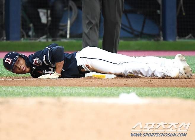 22일 서울 고척스카이돔 두산 베어스와 키움 히어로즈 경기. 9회초 무사 1루 정수빈 타석에서 2루 도루를 시도한 이유찬이 공이 빠지자 3루까지 진루하고 있다. 고척=정재근 기자 cjg@sportschosun.com/2022.9.22/