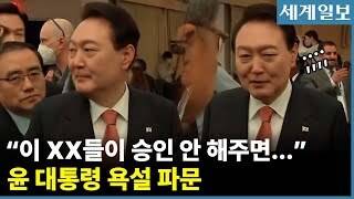 이후 박진 외교부 장관과 함께 행사장을 나서며 “국회에서 이 XX(사람)들이 승인 안 해주면 바이든은(또는 날리면) X팔려서 어떡하나?”라고 들리는 듯한 표현을 썼다.