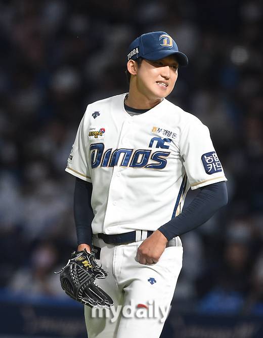 [마이데일리 = 창원(경남) 유진형 기자] NC 선발투수 구창모가 22일 오후 경상남도 창원NC파크에서 진행된 '2022 신한은행 SOL KBO리그' KIA 타이거즈와 NC 다이노스의 경기 6회초 투구를 마친 뒤 미소짓고 있다.