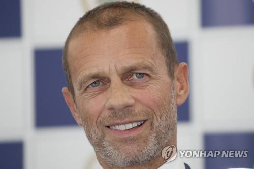 epa10199147 UEFA President Aleksander Ceferin attends a press conference after his meeting with Latvian Football Federation (LFF) president Vadims Lasenko in Riga, Latvia, 22 September 2022. Aleksander Ceferin visited Latvia to discuss the cooperation between LFF and local authorities in the construction of a football stadium in Riga. EPA/TOMS KALNINS