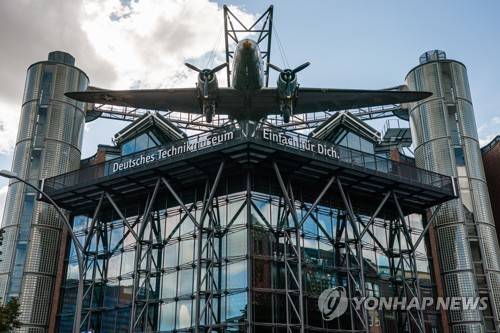 epa10199136 A so called 'Raisin Bomber' plane, a Douglas C-47 B Skytrain, sits on top of the Deutsches Technikmuseum (German Museum of Technology) in Berlin, Germany, 22 September 2022. The German Museum of Technology was opened in 1983. After the opening of a new building in 1996, the Raisin Bomber was added to the top of it in May 1999 and became a landmark of the museum. EPA/CLEMENS BILAN