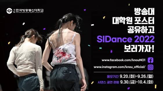방송대는 26일까지 "방송대 SNS(페이스북, 인스타그램) 방문하고 서울세계무용축제 가자‘ 행사를 진행한다고 22일 밝혔다.