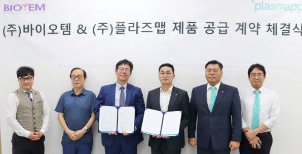 바이오 플라즈마 딥테크 기업 플라즈맵(대표 임유봉)은 바이오템(대표 이영호)에 임플란트 플라즈마 표면처리기 '액티링크 모션(ACTILINK motion)'을 공급하는 계약과 전용 포장용기의 특허 기술 계약을 동시에 체결했다고 23일 밝혔다.
