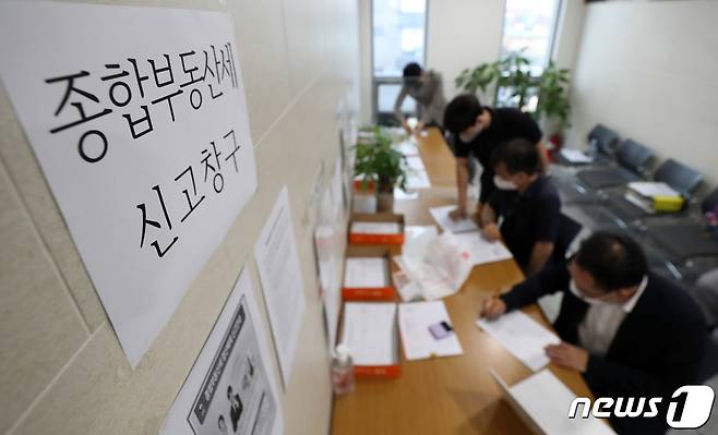 (서울=뉴스1) 구윤성 기자 = 23일 오전 서울 강남세무서에서 민원인들이 종합부동산세(종부세) 신고 관련 서류를 작성하고 있다.