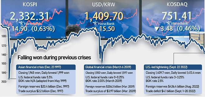 “The next defense line by authorities will be 1,450 won, but as fighting inflation is more urgent, high dollar exchange rate and interest rate environment will have to be endured to some extent,” said one foreign exchange expert.